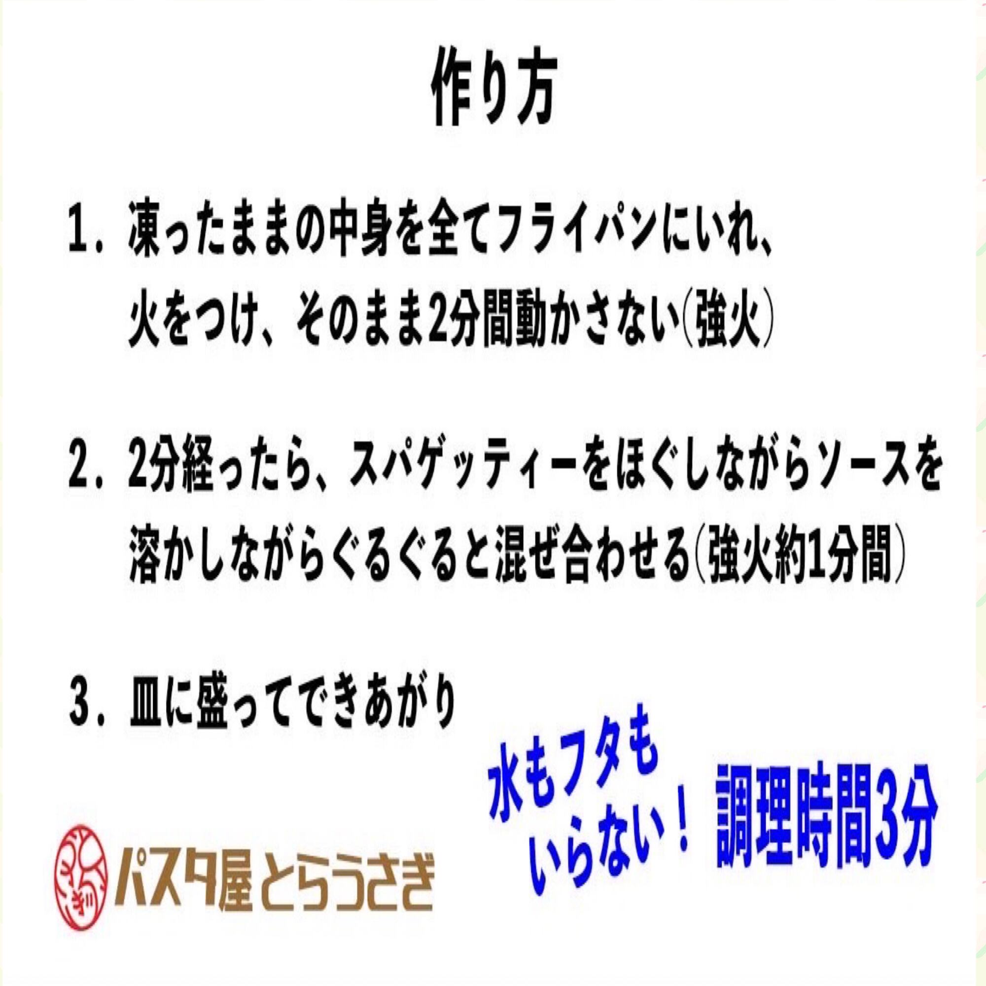 凍った状態からフライパン一つで3分で作れる本格パスタです。